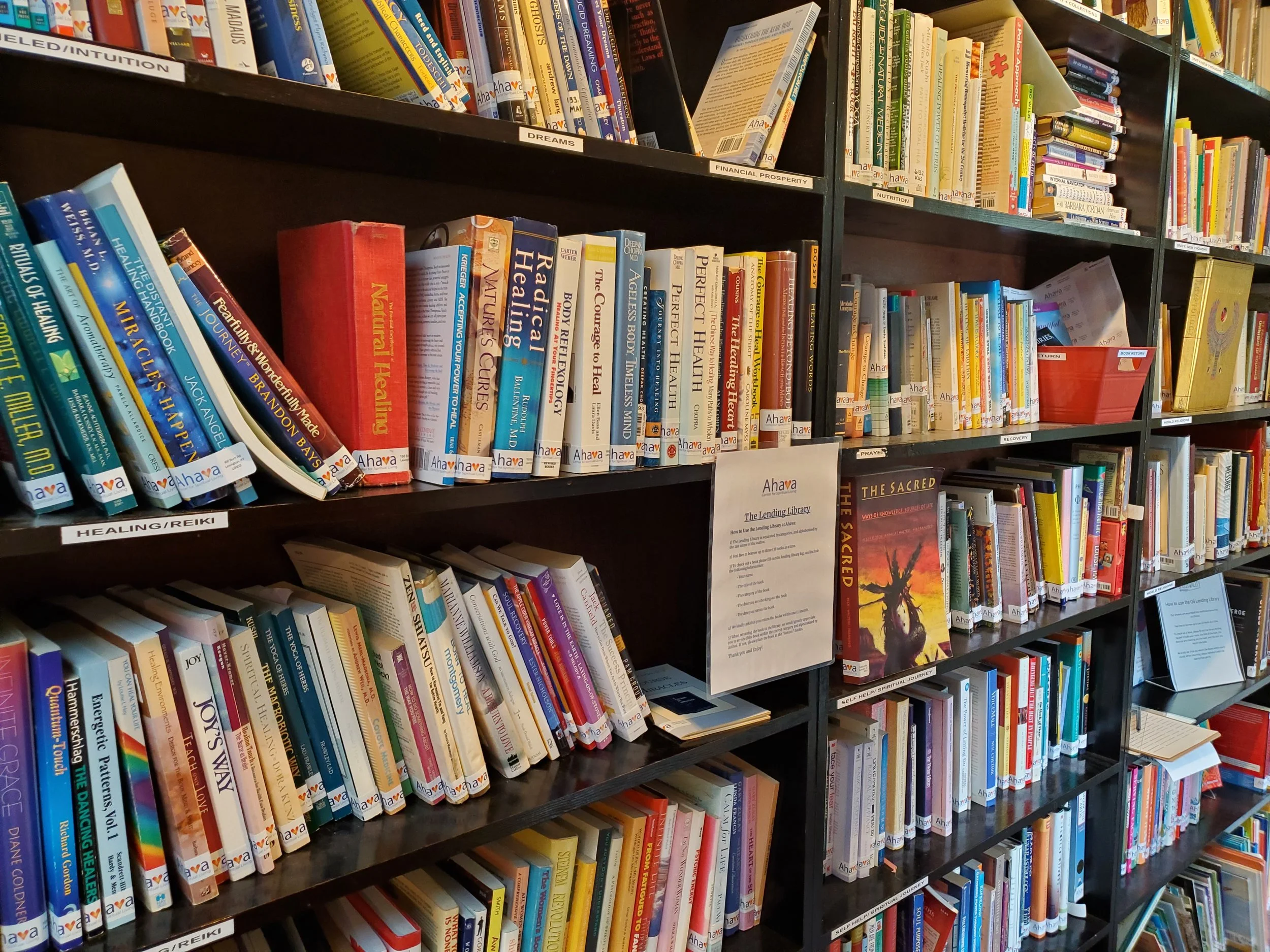 We have an extensive library of books available for members to check out for free! Topics include personal development, metaphysics, LGBTQ, racial justice, philosophy, astrology, I-Ching, and more!